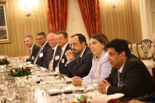 Η Κύπρος βρίσκεται σε ένα ξεκάθαρο δρόμο ανάπτυξης, ανέφερε ο Πρόεδρος της Δημοκρατίας Νίκος Χριστοδουλίδης παρουσιάζοντας τα συγκριτικά πλεονεκτήματα της κυπριακής οικονομίας σε γεύμα εργασίας/συζήτηση στρογγυλής τραπέζης, στο Τορόντο, με τη συμμετοχή επιχειρηματιών και επενδυτών σε τομείς όπως η καινοτομία, οι τεχνολογίας, η ανάπτυξη ακινήτων και ο χρηματοπιστωτικός τομέας.