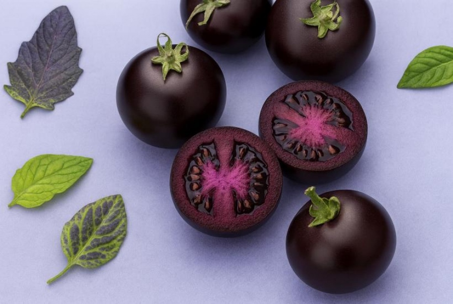 Η μοβ ντομάτα είναι αδύνατο να μπερδευτεί με άλλες ποικιλίες.